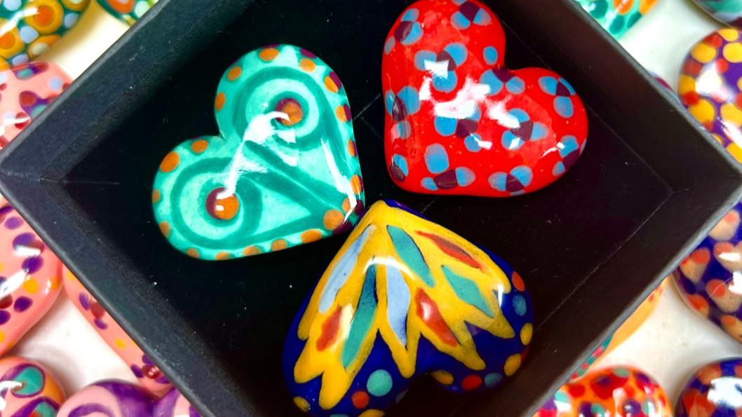 Donate $100: Pick a palm heart and two pocket hearts, OR two palm hearts or four pocket hearts.